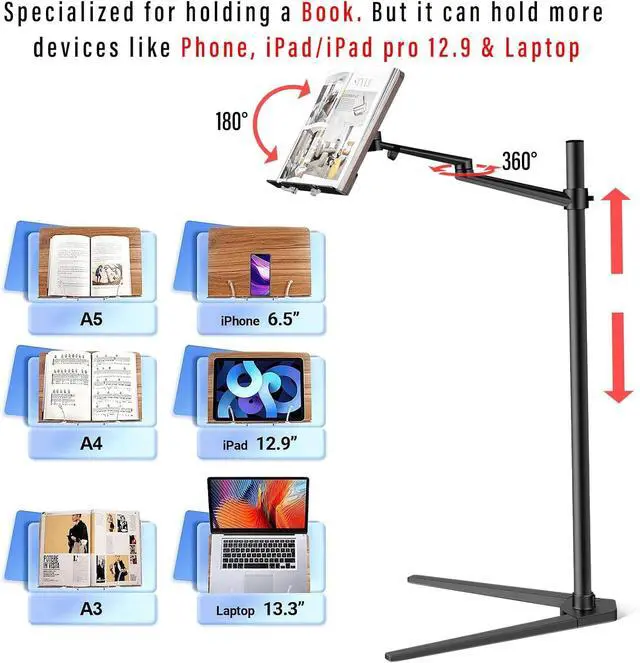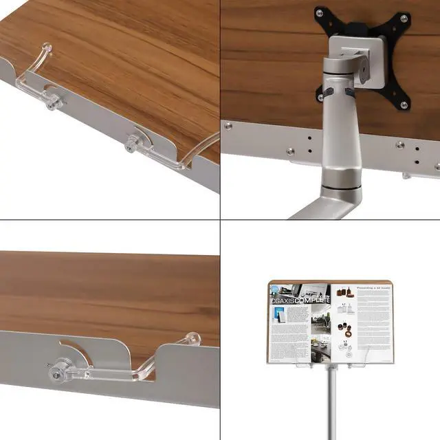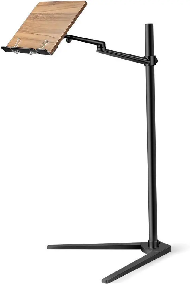 Adjustable Design: The wooden tray can tilt around 45 degrees and can rotate/swivel to almost any angle you need, such as reading while sitting or lying down in bed holding the laptop/phone/tablet safely with spring clips when doing yoga or anytime you want free your hands