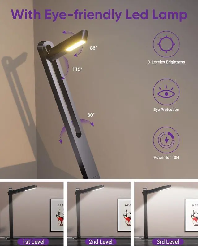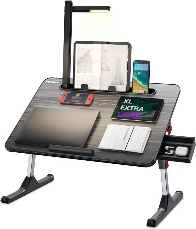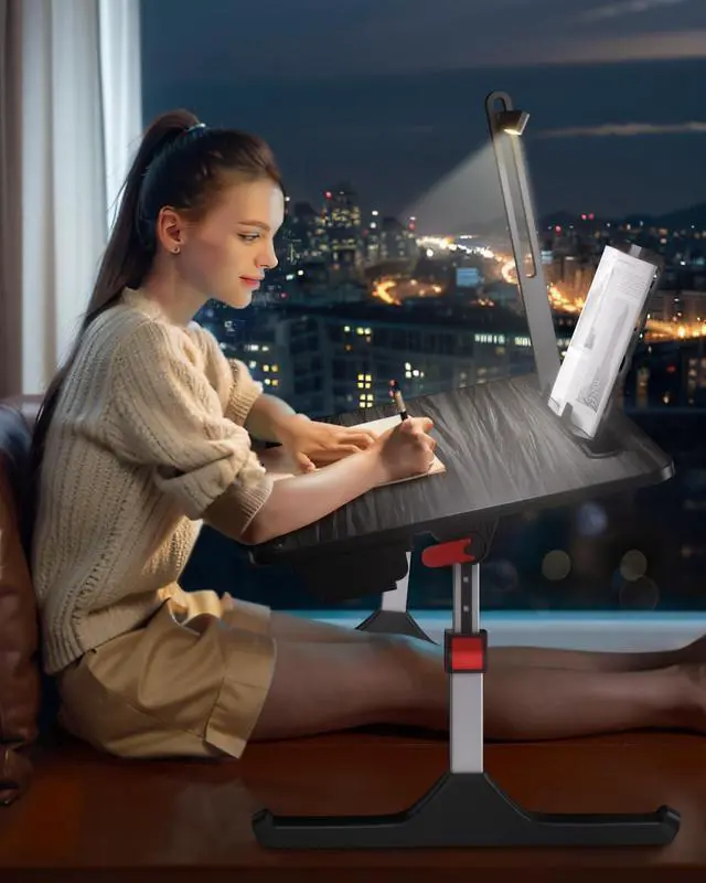 Reliable & Duable: Our lap desk with light boasts stability with a triangle structure and sled legs. Crafted from premium ABS materials and alloy steel, it ensures durability and device security. Integrated features include a book stand, storage drawer, and removable stopper for added convenience. Elevate your workspace with this dependable companion, enhancing comfort and tranquility in your home
