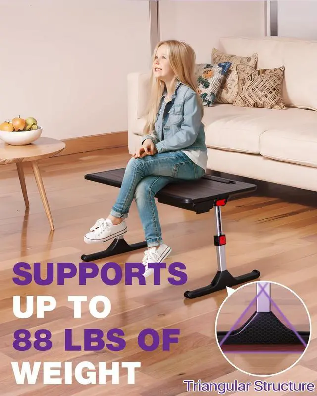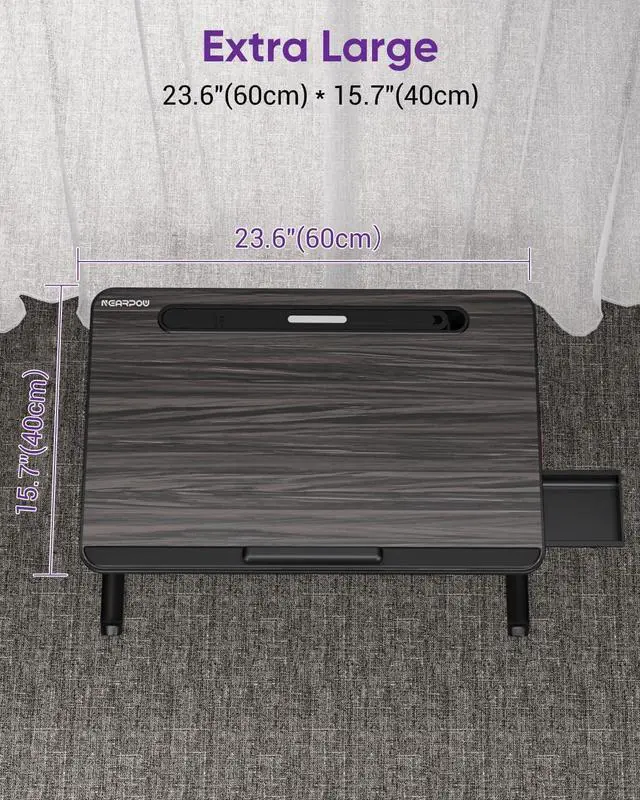 XL Extra Large: This 23.62" x 15.55" extra-large laptop lap desk provides ample space for your laptop, textbook, mouse, and smartphone. Ideal for adults kids to use on the couch, bed, table, or floor, its legs are 30% thicker for enhanced stability and offer plenty of legroom for cross-legged sitting. With a load-bearing capacity of up to 88 lbs, it delivers sturdy support. Enjoy the convenience of having everything within reach and the comfort of an efficient workspace anywhere