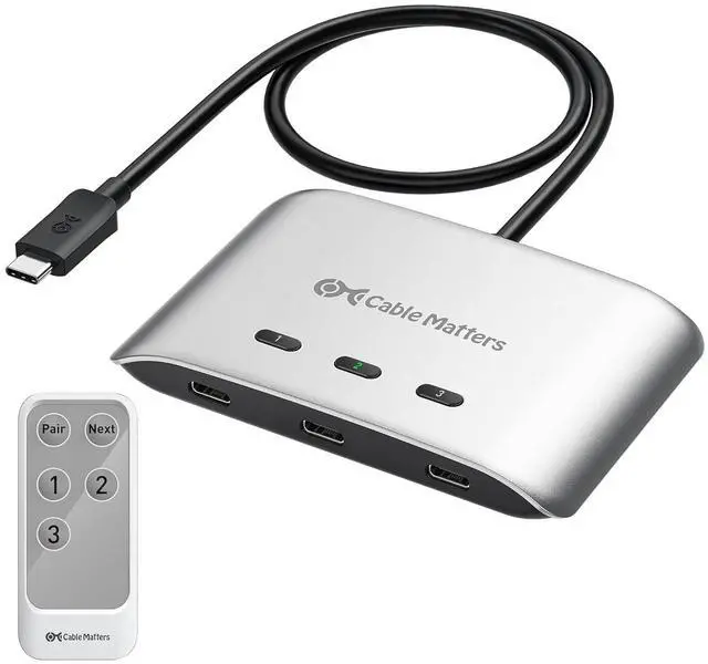 Convenient RF Remote Control for Effortless Switching: Easily switch between three connected laptops using the included RF remote control, without the need for additional software or drivers. Maintain a clean, organized workspace with minimal cables and switches. The remote control adds flexibility, making it easier to manage your devices and ensures the USBC switch fits perfectly into your workspace setup.