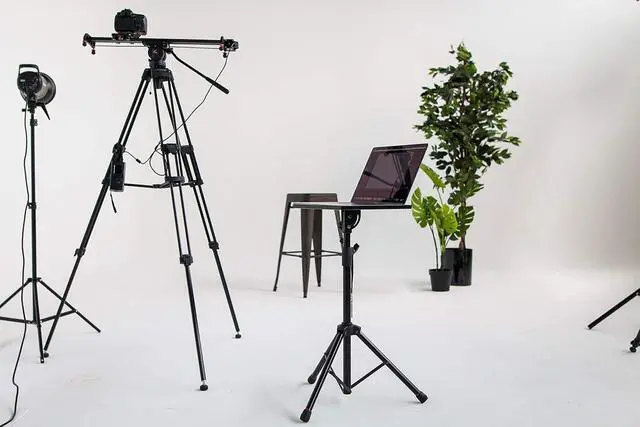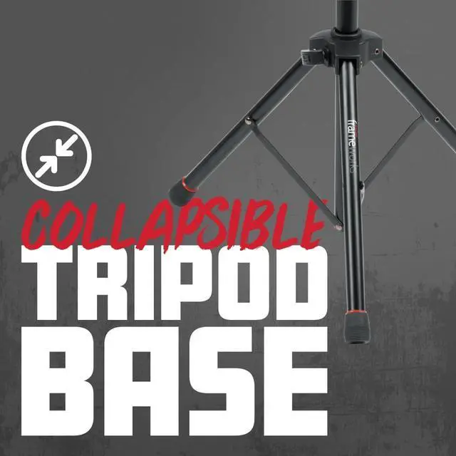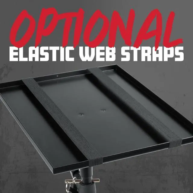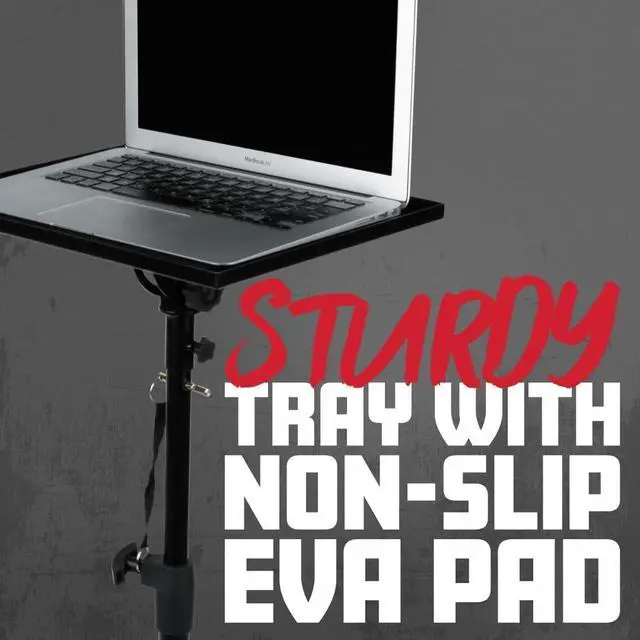 The laptop and projector tripod stand by Gator Frameworks provides a sturdy floor stand solution for multiple devices, including laptops, projectors, pro audio equipment, recording gear, sheet music, DJ controllers, and similar items. The GFWLAPTOP1500 suits an array of applications, from audio recording, live stage performances and photoshoots to classrooms, meeting rooms and outdoor movie viewing events. The projector platform measures 14/356mm x 11/279mm to fit multiple projector and laptop models up to 20 lbs. / 9.07 kg maximum in weight (including MacBook Pro, MacBook Air) and features an ergonomic tilting mechanism underneath with a locking knob for setting your equipment at the preferred angle. Adjust and secure the stand height between 28.25 /718mm to 44.5 /1130mm using the soft-touch knob and built-in safety pin. For added safety, an adhesive non-slip EVA foam pad and removable elastic web straps help to grip gear, along with flanged edges on the tray to prevent equipment from slipping off the platform. The GFWLAPTOP1500 travels easily to off-site photo and video shoots by virtue of its collapsible tripod base and folding tray design.