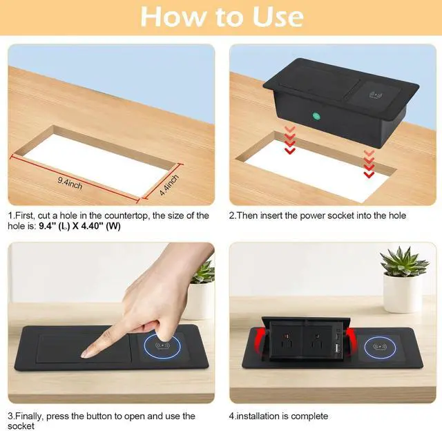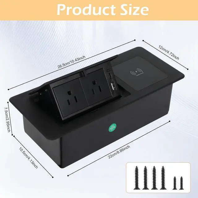Sturdy & SafeOur pop-up desktop sockets have leakage protection and waterproof function, so don't worry if your children spill water accidentally, just wipe the water off the surface, all power modules are UL listed, it allows you to install sockets anywhere.