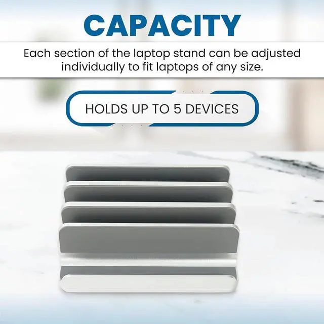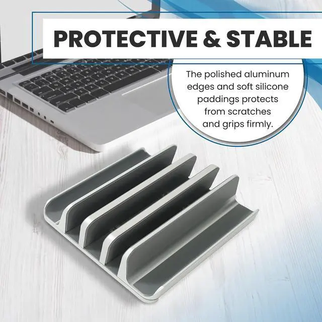 Protective & Stable: The 5 slot adjustable laptop stand is made with solid aluminum alloy, with a heavy base that stably holds the laptops in an upright position. The polished aluminum edges and soft silicone paddings protects from scratches and grips firmly. Get the full desktop experience. Connect an external monitor, keyboard, and mouse to your laptop, and dock your computer for maximum productivity. For a Mac stand, use closed-clamshell mode while using your MacBook holder stand for desk.