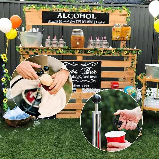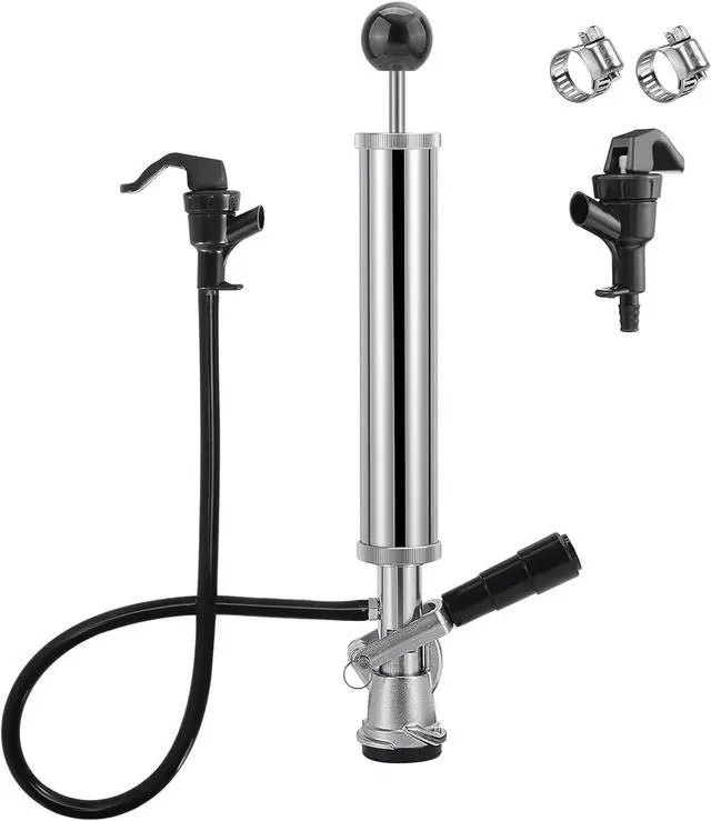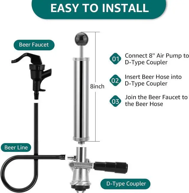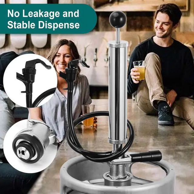 EASY TO USE AND MAINTAIN: Designed for simplicity, this beer pump requires no electricity, CO2 tanks, or regulators. Simply place the keg in an ice bucket and use the piston rod handle to dispense beer. The pump and hose are detachable for easy cleaning, preventing residue buildup and ensuring your beer stays fresh with every pour