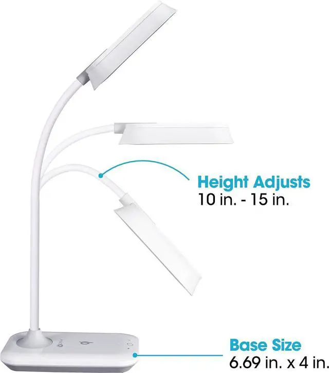 FLEXIBLE NECK: The height adjusts from 11.75 to 21 inches with the flexible neck. The base measures 4 x 6.875 inches. Switch the height to utilize the low glare, high contrast illumination while reading, in the office, or crafting.