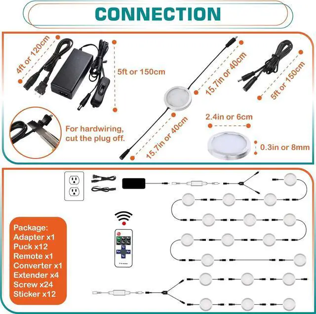 Low Profile - The height of the puck light is approximately 0.3 inch, as a result, the pucks can be hidden well under a cabinet