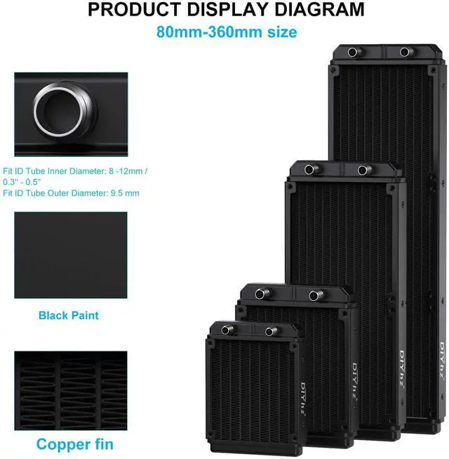 Made of pure copper fins with good heat dissipation, Using the black oxidation paint to increase the thermal efficiency.