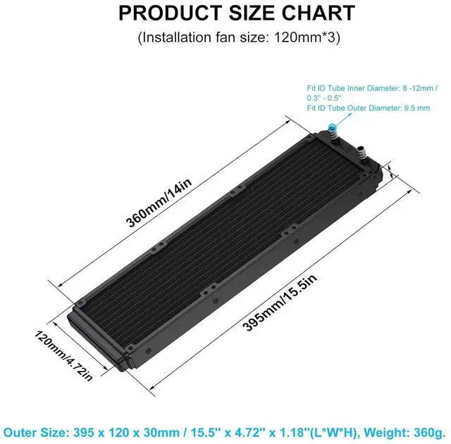 - Fit ID Tube Outer Diameter: 9.5 mm / 0.37 ''