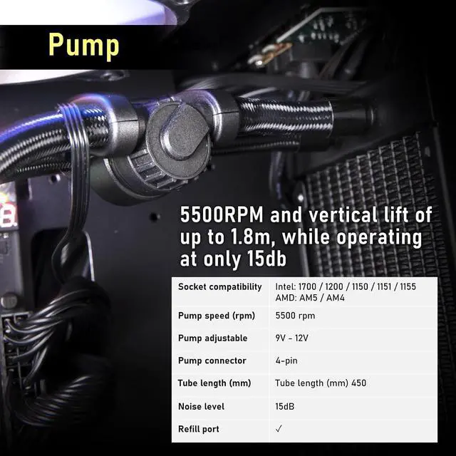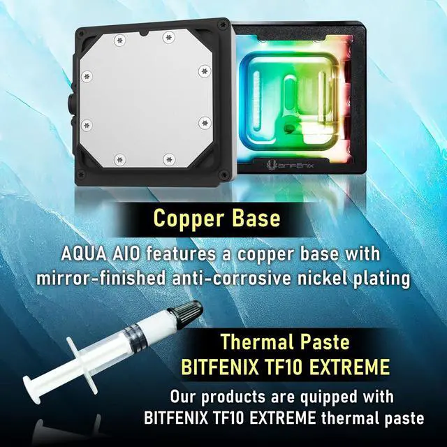 Copper Base: AQUA AIO features a copper base with mirror-finished anti-corrosive nickel plating.