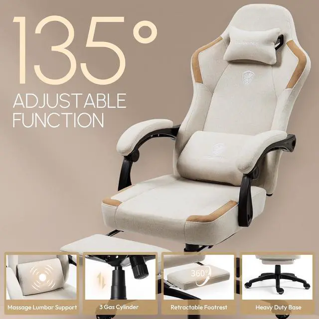 Meets Daily Needs: Users can recline up to 135 degrees, making the chair suitable for various scenarios such as gaming, working, and relaxation. The lumbar pillow and headrest provide essential support, reducing strain on the lower back and neck during extended sitting sessions