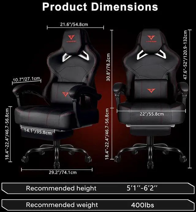 [Superior Stability] - Constructed with a sturdy steel frame, high-density foam padding, SGS certified gas lift, and explosion-proof base, this chair can support up to 400lbs, providing excellent stability and durability for intense gaming sessions