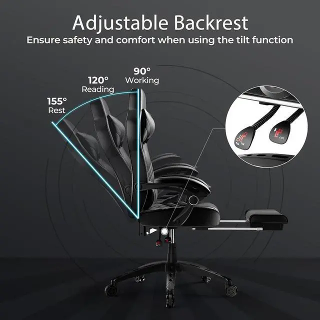 Liberate Your FeetThe video game chairs is equipped with retractable pedals. You can pull out the footrest to relax your feet, further improving your sitting experience. The e-sports chair can rotate 360 ° horizontally, and the roller provides smooth movement, which is convenient for your movement and communication.
