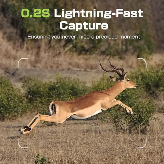 0.2 s Trigger Speed & No Glow Night VisionTkenpro game camera boasts the PIR sensor and wake up within 0.2 s after capturing animals, ensuring precise tracking, fewer false alarms, extended coverage, real-time feedback in both photos and videos. Besides, game cameras with night vision activated waterproof captures every detail without disturbing animals at night, while delivering stunning real-time video to your smartphone.