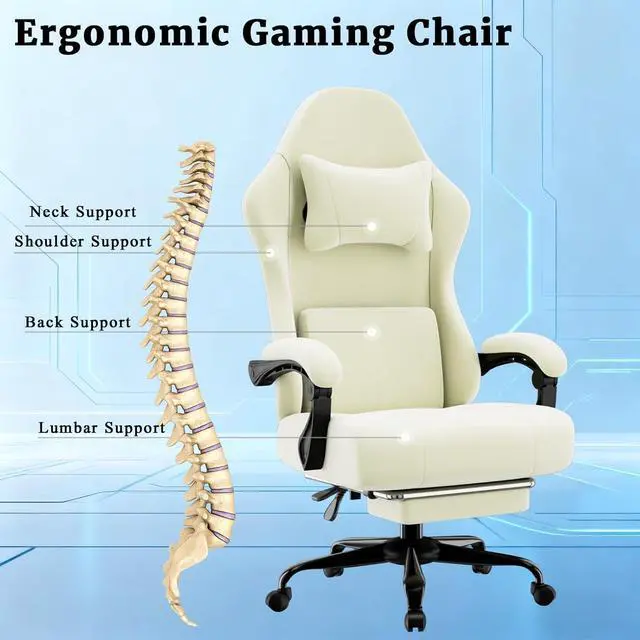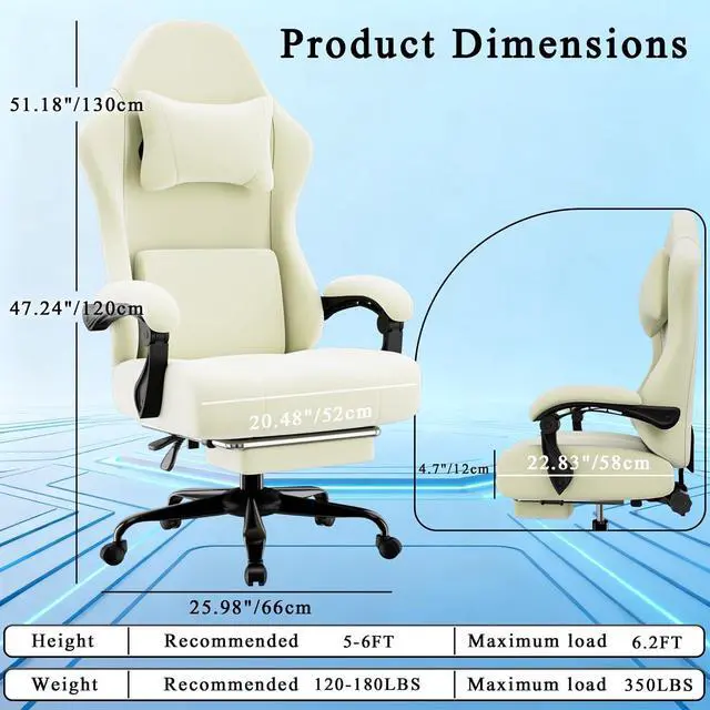Safe and Stable: The computer gaming chair adopts a sturdy steel frame and an electroplated metal star-shaped base to provide extra stability, and it can bear a weight of up to 350 pounds. In addition, the SGS-certified gas lift ensures smooth and safe height adjustment, which can withstand long-term wear and use
