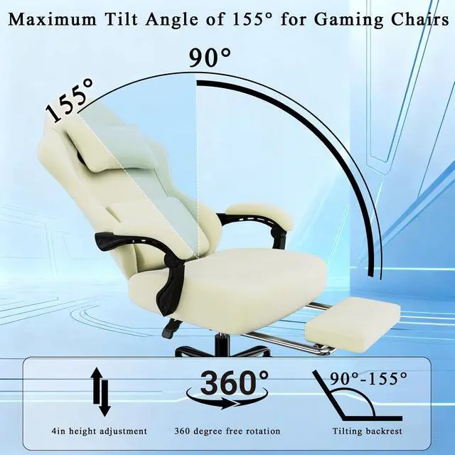 Comfortable Gaming Chair: The ventilation holes on the fabric surface of the office gaming chair ensure air circulation, delivering a cool sitting experience. The soft fabric is skin-friendly and durable, specially designed for prolonged sitting activities. This gaming chairs for adults is equipped with a backrest adjustable from 90° to 155°, along with adjustable armrests and a headrest, which fit the natural curves of the body to achieve personalized relaxation and optimal fit