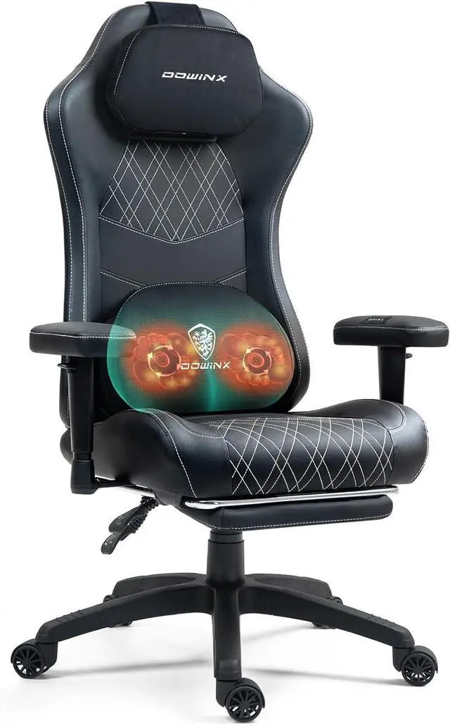 Elegant Design with Protective Features: This massage gaming chair's premium stain-resistant leather effectively repels spills and marks, while the scratch-resistant base maintains its pristine appearance over time. This stylish design seamlessly integrates into both professional office settings and dedicated gaming spaces, offering both aesthetic appeal and practical durability