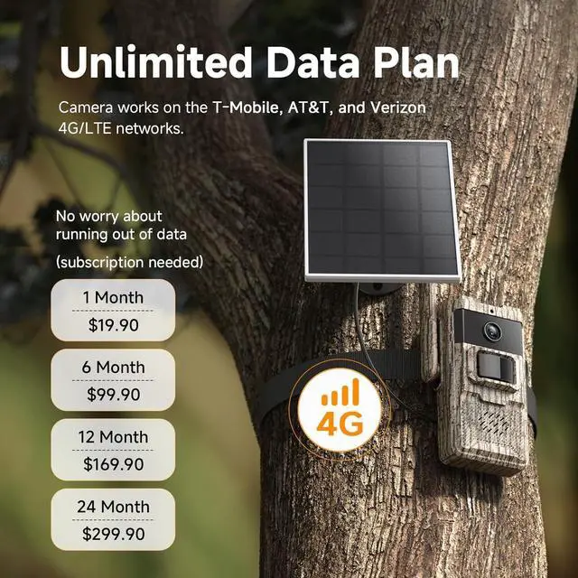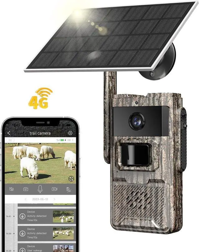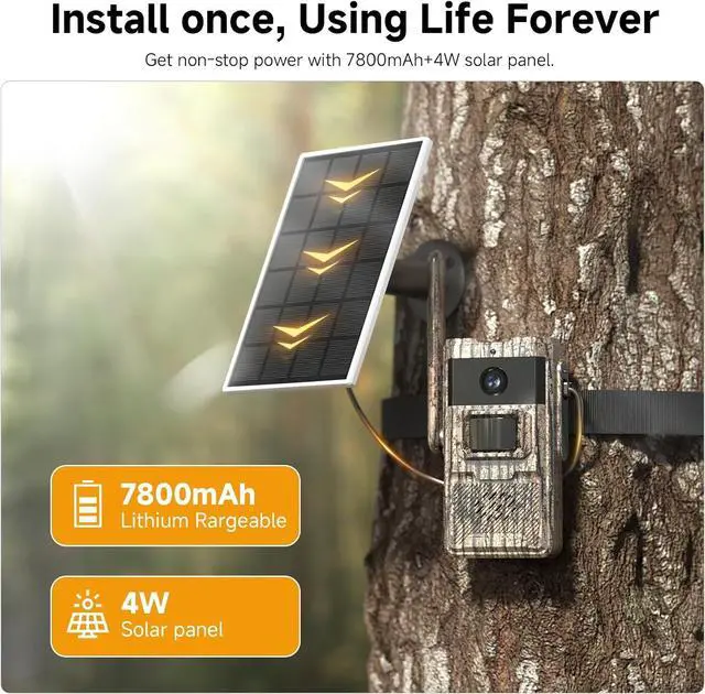 Solar Trail Camera & IP66 WaterproofEuqipped with a 4W trail camera solar panel and a 7800mAh rechargeable, forming a dual power supply system that guarantees the solar cellular camera remains consistently energized. The live feed trail camera has IP66 waterproof rating for stable and long-lasting operation even in complex and changing environments. It is widely used in wildlife sanctuaries, barns and farms.