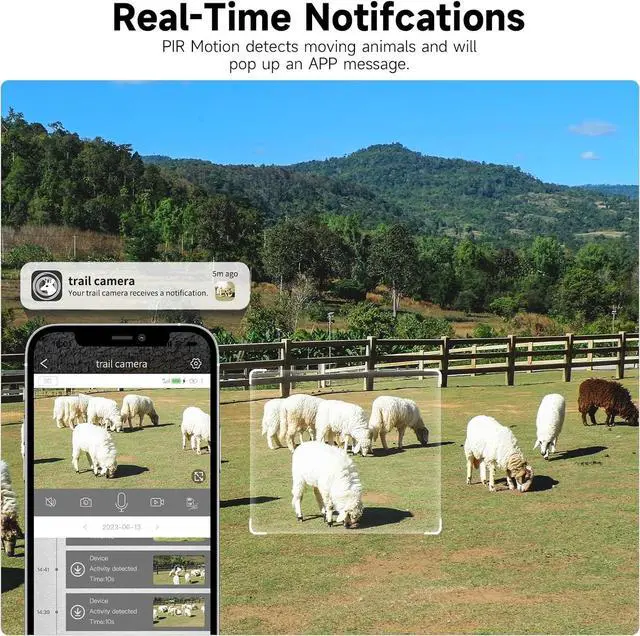 0.2 s Trigger Time & PIR Motion AlertsTkenpro game camera boasts the PIR sensor and wake up within 0.2 s after capturing animals or human movements, ensuring precise tracking, fewer false alarms, extended coverage, real-time feedback in both photos and videos. Timely alerts are provided through the Ucon app.