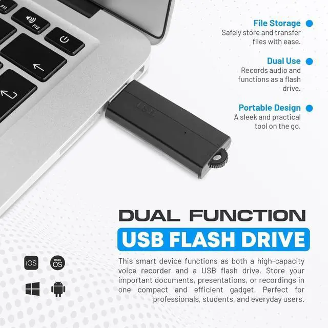 Simple File Transfer Easily connect via USB to any Windows or Mac device for quick playback, saving, and file management. Includes a USB-C adapter for added compatibility.