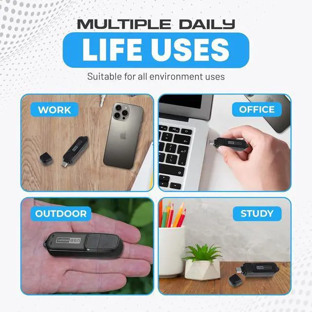 Quick Charging, Long Runtime Fully recharges in just 2 hours and provides up to 26 hours of continuous audio capture per full charge.