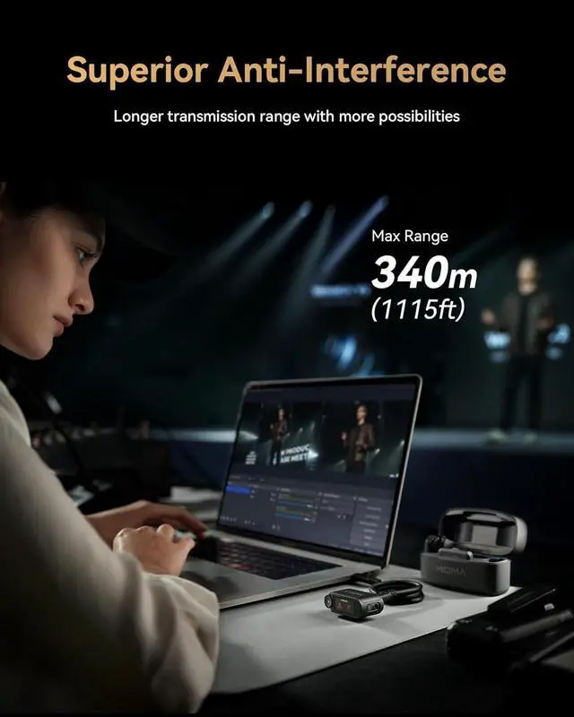 340m Long-Range Stability The Hollyland LARK MAX 2 wireless mic delivers crystal-clear audio for professional video recording, incredibly stable audio with LOS range of up to 340m (1115ft). Utilizes advanced 2.4 GHz frequency hopping technology to deliver pristine sound quality and 25ms ultra-low latency (*TX to RX).