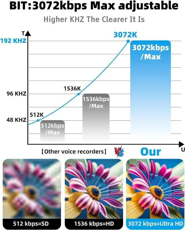Voice Activated Recorder: Activate voice control mode, and the recorder automatically starts recording when sound exceeds 45 decibels, pausing when there's silence. This feature conserves storage space and eliminates unnecessary recording gaps.