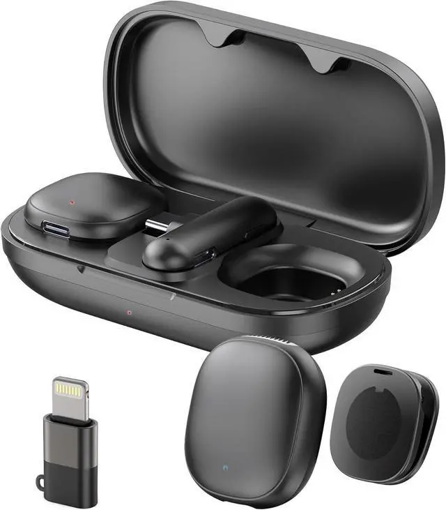 Phone Microphone for iPhone: Plug the receiver into your cellphone, then turn on the mini mic. It will automatically pair and work, no extra settings. The wireless lapel microphone USB C compatible with iPhone 15 16 Android etc. Enjoy the cordless AI microphone for video recording