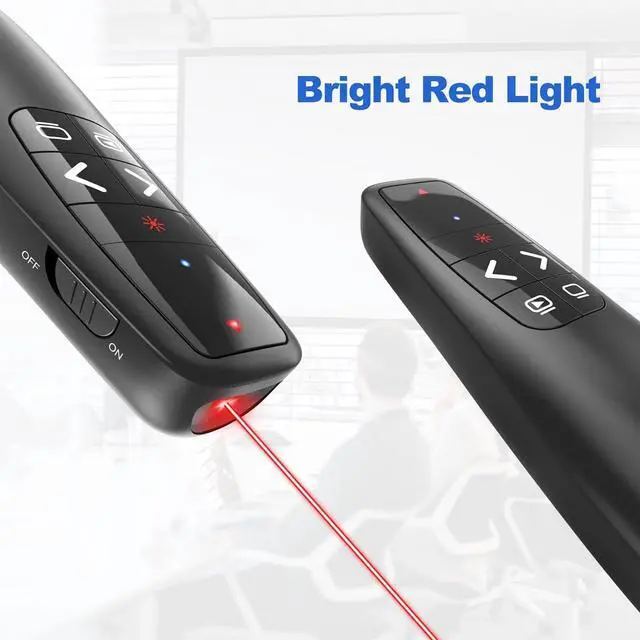 [Widely Compatible] Wireless presenter remote with laser pointer works with desktop and laptop computers.