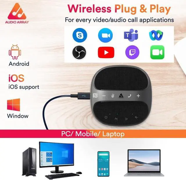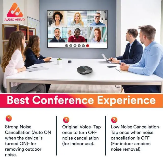 Noise Reduction (NR): Real-time voice noise reduction through a unique and intelligent algorithm restores more voice details. Eliminating the background sound during meetings, such as air conditioning, printer equipment, keyboard clicks, etc