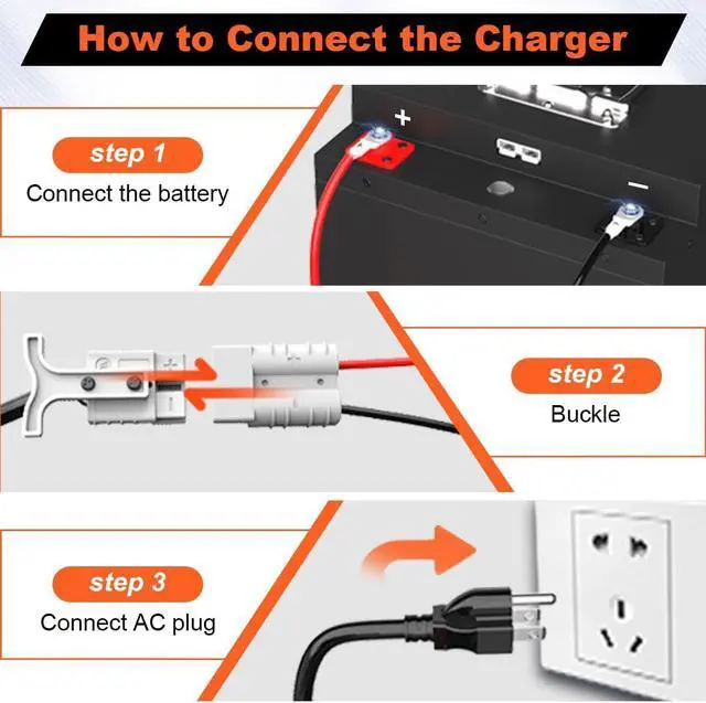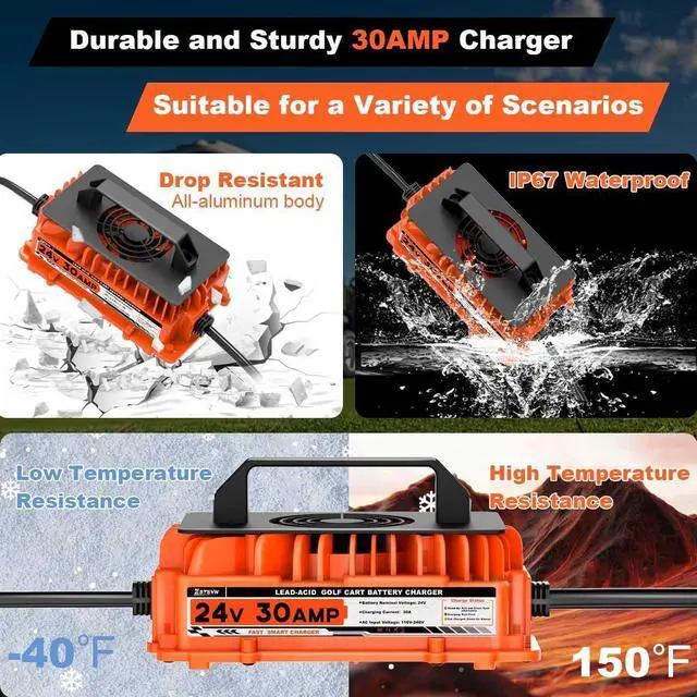 Lightweight and Compact: Our durable charger with handle is easy to carry, only 6 pounds and small size, which is one-third the weight of the old Lead-Acid chargers, it can be taken anywhere you want to charge. And with a more abrasion and heat-resistant rubber cord, suitable and sufficient length from the plug to the device. LED indicator clearly indicates the charging status.