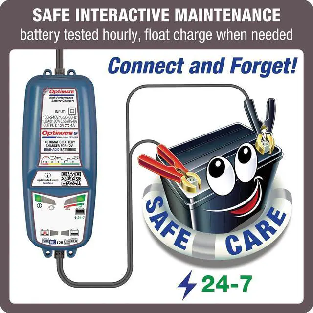 - OptiMate is recommended by Honda, Yamaha, Kawasaki, KTM and Husqvarna and global battery manufacturers Antigravity, Super-B and Earth-X; - Fully sealed case to protect against spillage and light rain.