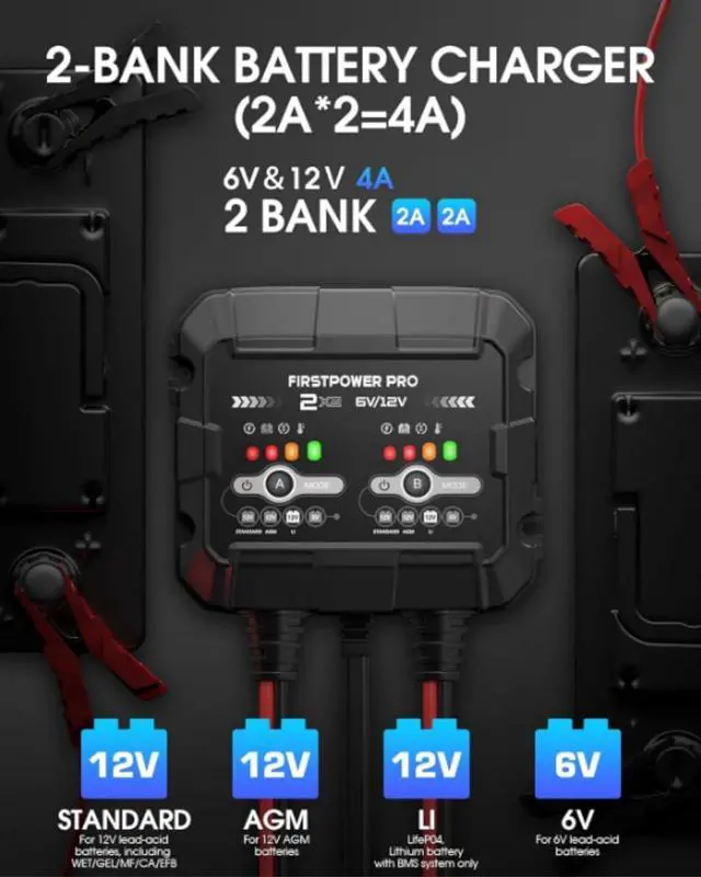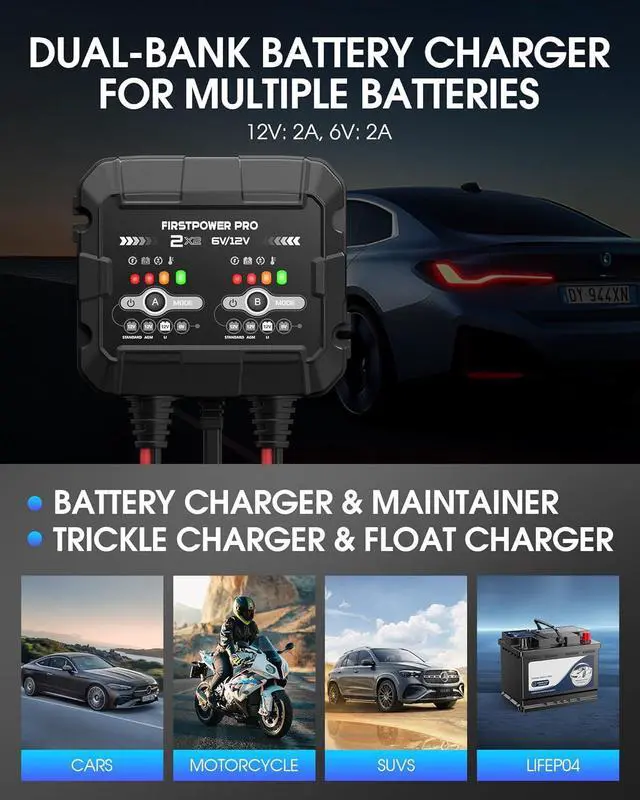 Smart Diagnostics & PortabilityThe FirstPower Pro 6/12 volt battery maintainer charger features an intuitive LED indicator that offers clear visual feedback on the state of charge and diagnostic information, even in maintenance mode. Easily monitor your batterys condition, including charging status, full charge, and maintenance alerts. With an input range of 100-240V, this ultra-compact and lightweight motorcycle charger is convenient to carry anywhere.