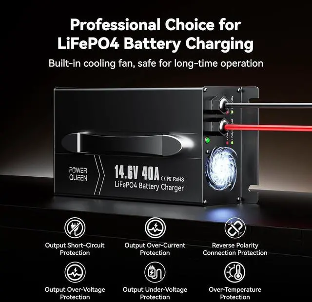 AUTOMATIC SWITCHING OF CHARGING MODEThroughout the charging process, the charger smoothly alternates among three charging modes: Pre-Charge Mode, Constant Current (CC), and Constant Voltage (CV), guaranteeing a secure and steady charging experience