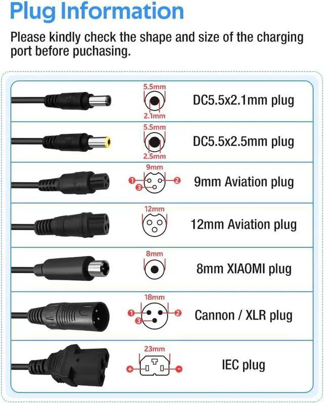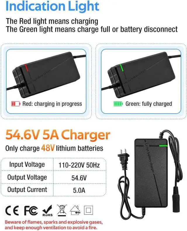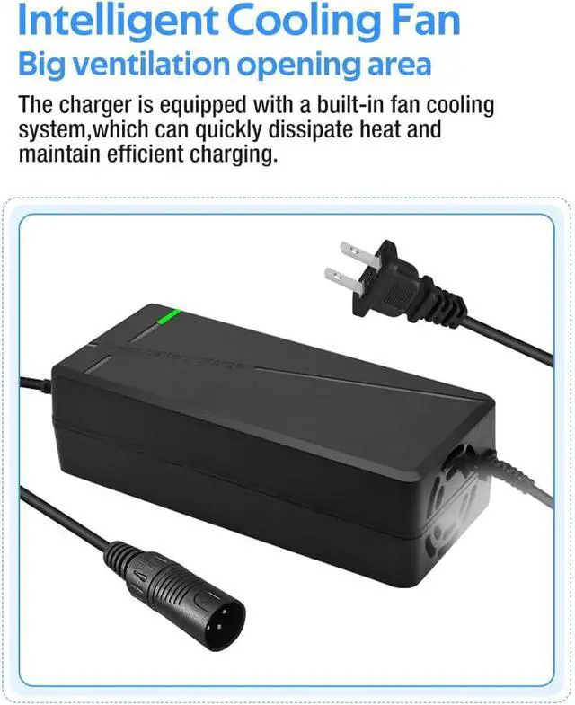 The charger is equipped with an intelligent chip that can provide overvoltage, overcurrent, short circuit, and temperature protection.