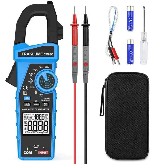 User-Friendly Design and Enhanced Security: The backlit LCD screen with large text ensures clear readings in low-light conditions, while the built-in flashlight helps access hard-to-reach areas. Data hold, max/min, and zero functions simplify measurement and analysis. The low battery indicator and continuity buzzer provide additional convenience. Security is ensured with the IEC 61010-1, CAT III 600V standard and double insulation, making the clamp meter secure for use in a variety of applications