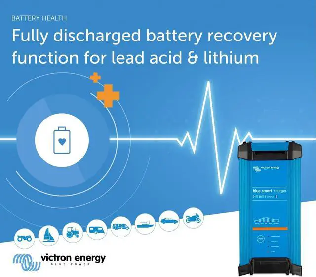 FOR ALL KIND OF DEVICES AND VEHICLES: Victron Energy Blue Smart IP65 Charger is splash-resistant and can be used on devices in your workshop and on motor or marine vehicles, such as (classic) cars, boats, yachts and motorbikes