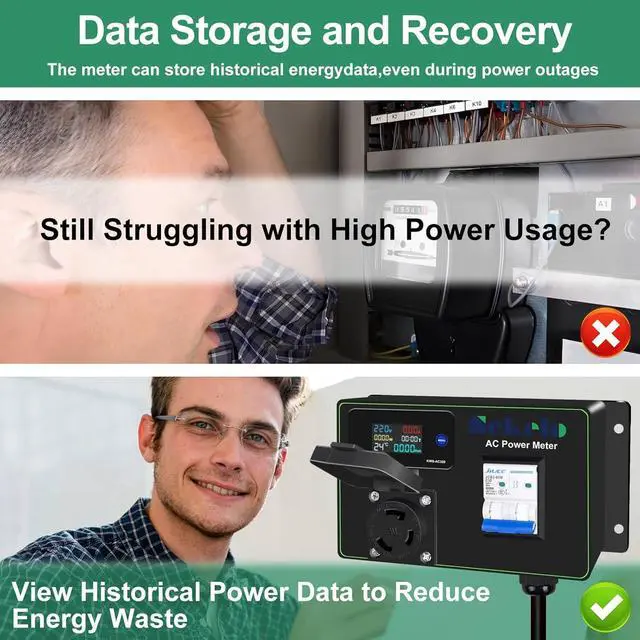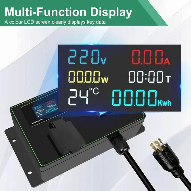 Wide Application Range: Compatible with NEMA L6-30P to NEMA L5-30R outlets, this power monitor is ideal for residential use (e. g., lights, chargers, and small kitchen appliances), commercial spaces (e. g., computers, printers, and lighting), as well as industrial and educational equipment, supporting up to 30A current.