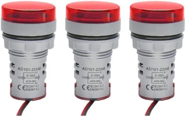 Pilot light current meter specifications Mounting hole size: 22 mm (7/8 in). AC 50 -380 V.