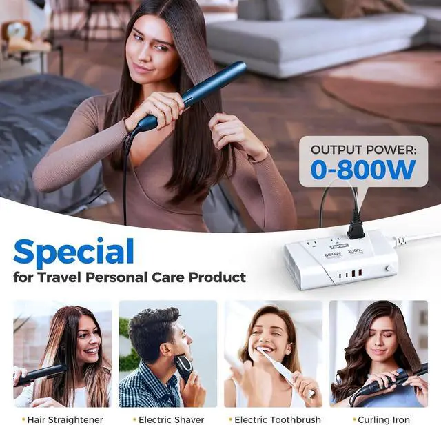 [Advanced Safety Protection] Built with premium safety features to protect both you and your devices. Overcurrent, overload, overheating, and short-circuit protection ensure that your American appliances stay safe in any countryno burnouts, no worries.