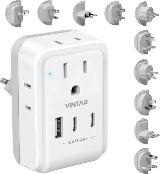 Compact: This compact travel plug adapter worldwide can save your suitcase space (Dimensions: 3.0 x 2.0 x 1.8 in. without plug attached). Included storage bag to prevent plug breaking and equipment bumping during the journey. The Led indicator can let you know the power is on/off. This universal plug adapter will be your travel essentials during world trips and cruise trip