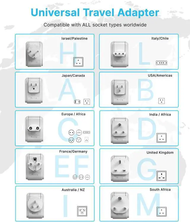 Quality Assurance: Certified by CE and FCC to ensure the quality, high quality shell material can maintain good heat dissipation and flame retardancy. Precise punching makes each outlet adapter international use easy and stable. Each travel adapter worldwide is tested before shipment and has a 12-month warranty and friendly customer service. Any problem with it, please contact us