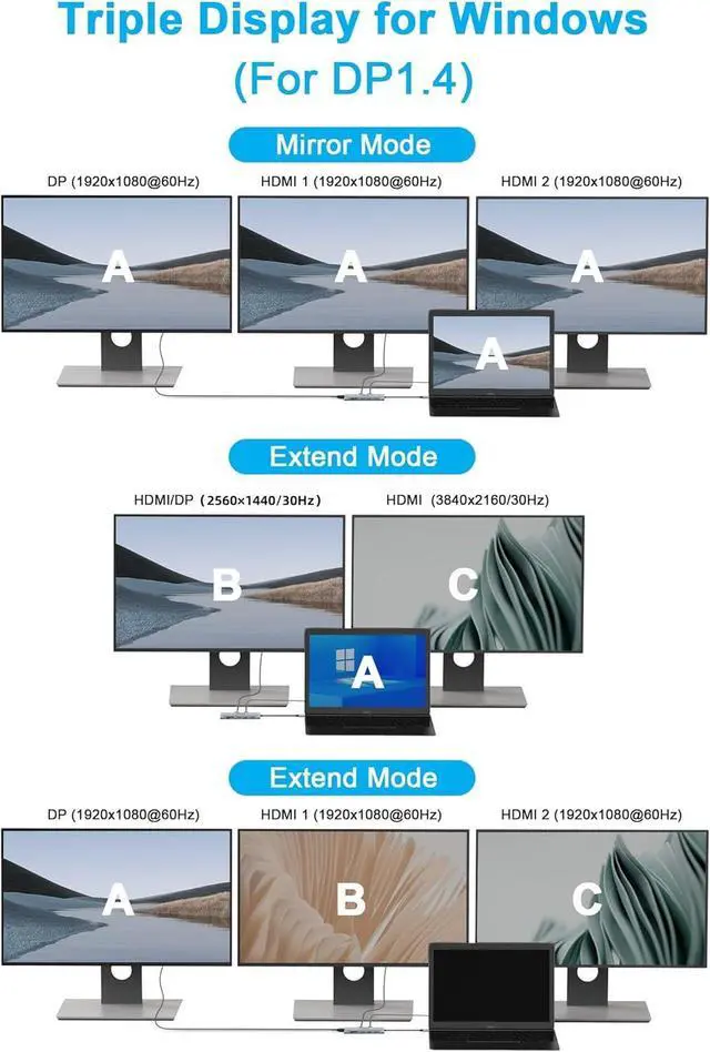 WIDELY COMPATIBLE LAPTOP DOCKING STATION: Universal Docking Station is compatible with Laptop which USB-C Port has video output, data transfer, charge function.