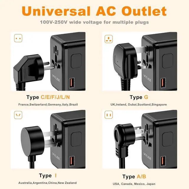 NOT a Voltage Converter: Our power plug adapter can charge all USB devices anytime anywhere, such as phones, iPad, camera, powerbank, bluetooth earphone, bluetooth speakers, etc. But it can NOT Convert VOLTAGE for electric appliances(Note: Only compatible for 100V to 250V wide voltage device). Please check your hair dryer, electric shavers, straightener, curling irons, iron and other high power devices before use. If you need to use devices over 250V, please use an additional voltage converte