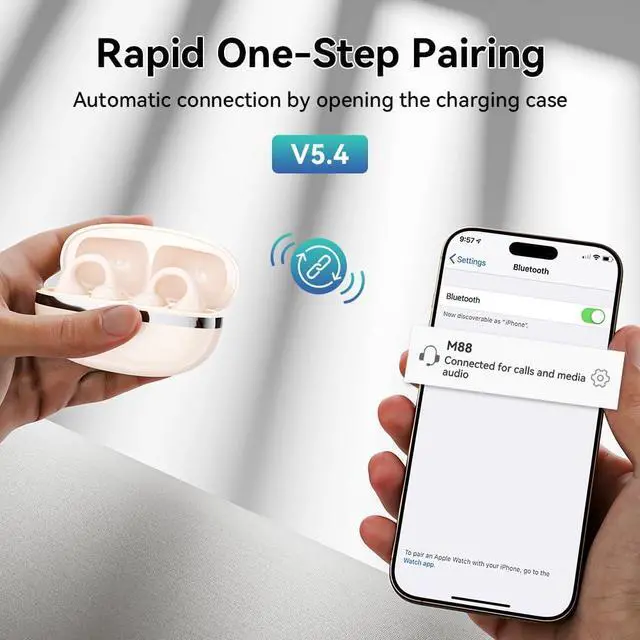 Water-Resistant: Built with protective nano-coating offer, M88 open ear earbuds offer IPX6 water resistance. so that you don't have to worry about the interference of sweat and rain
