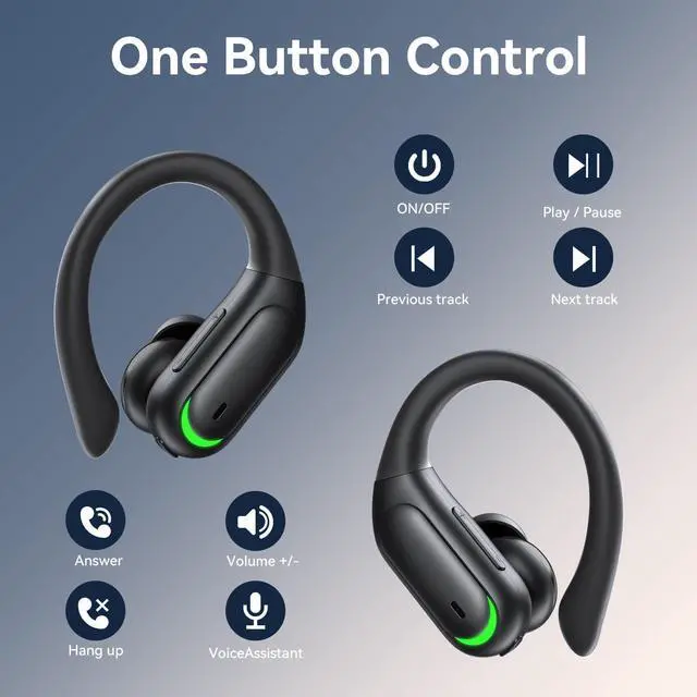 Ergonomic Design and IPX7 Waterproof: Over ear bluetooth headphones adopts a curved ear hook design, which is ergonomically designed and fits your ears tightly without causing any discomfort or pressure on your ears. It can stay stable and comfortable whether worn for a long time or when exercising. IPX7 waterproof design, with nano-coating on the surface, effectively prevents sweat and other liquids from entering the inside, suitable for jogging, gym, yoga and more sports.