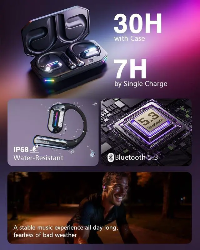 [All-Day Uninterrupted Use] - Get up to 7 hours of continuous listening on a single charge. With the charging case, your total playback time reaches an impressive 30 hours. Whether youre on a long run, a busy workday, or just enjoying your favorite tunes, the LibreFit Aurora keeps you connected without frequent recharging.