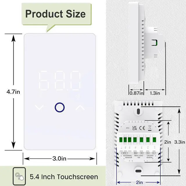 DIY Installation: The digital thermostat comes with clear installation manual, simplifying the setup process. And this smart assistant thermostat comes with a 15 ft ( 4.55 m) floor sensor, ensuring continuous and reliable performance. Please give MAXKOSKO a chance, we won't let you down, PROMISE