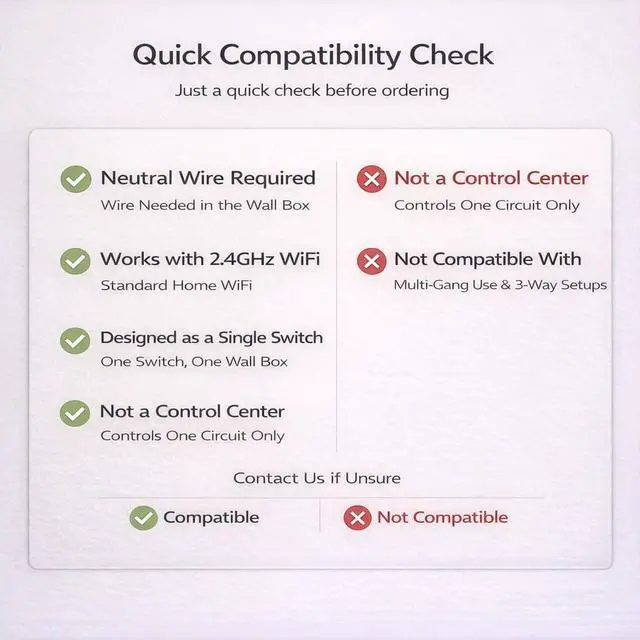 Installation Notice Neutral wire required. Designed for users with basic electrical installation experience.