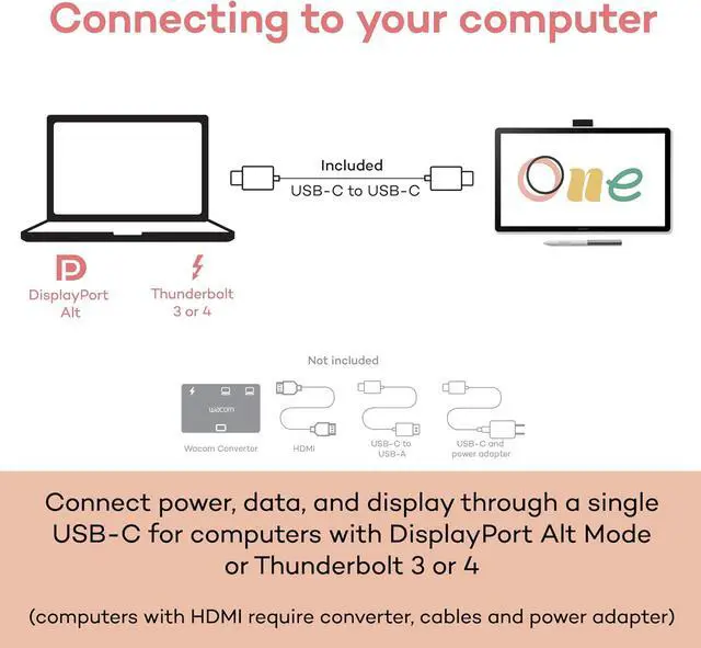 USB-C: devices requiring HDMI require additional converter, cable and power adapter kit (sold separately)