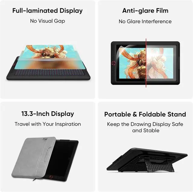 Exceptional Visual Experience: Our 13.3 -inch drawing tablet features a full-laminated screen with AG Film, reduces parallax and glare for a paper-like feel. With Full HD resolution and an IPS panel, enjoy vibrant colors and sharp details from a wide 178° viewing angle, ideal for drawing, animation, photography, fashion, architecture design, and much more